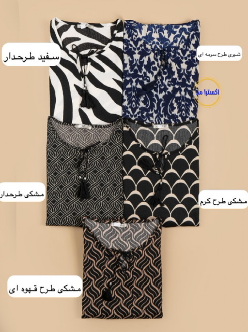 | سایز1 | دورسینه100باکشسانی124 دورشکم100باکشسانی124 دوربازو36باکشسانی40 |