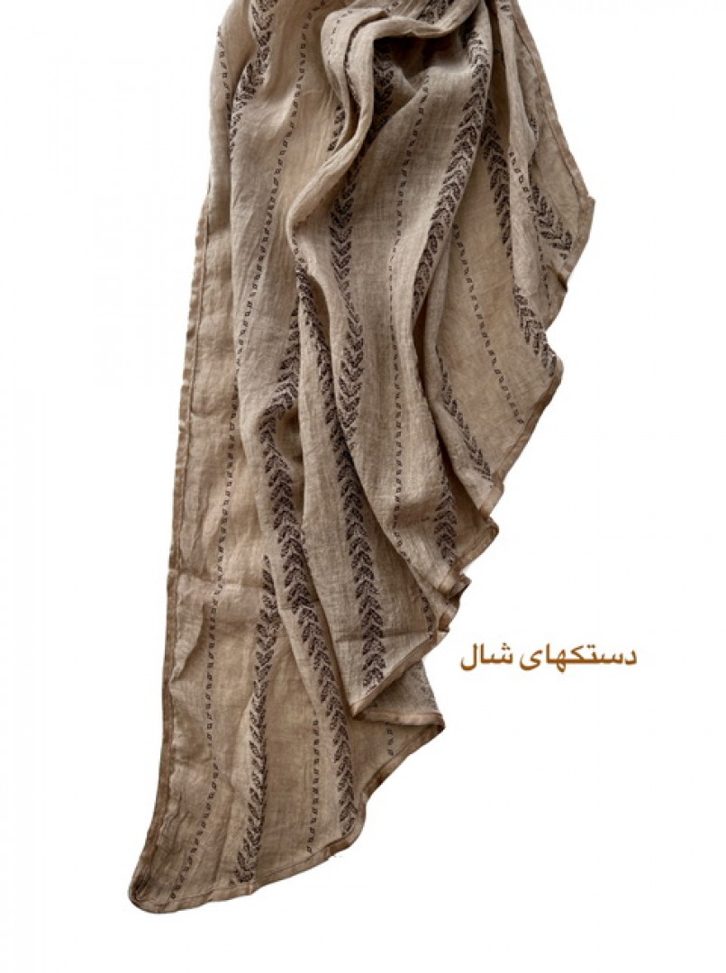 جنس شال:لینن نخ سنگشور خاکی رنگ بسیارسبک خوش ایست بادستکهای خاص وزیبا