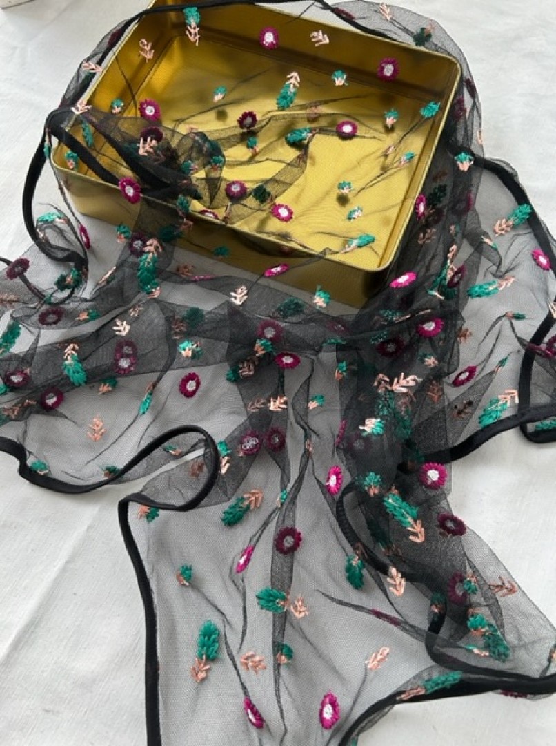 مینی اسکارف توری گلدوزی شده باحاشیه گان دوزی بسیارجذاب وزیبا