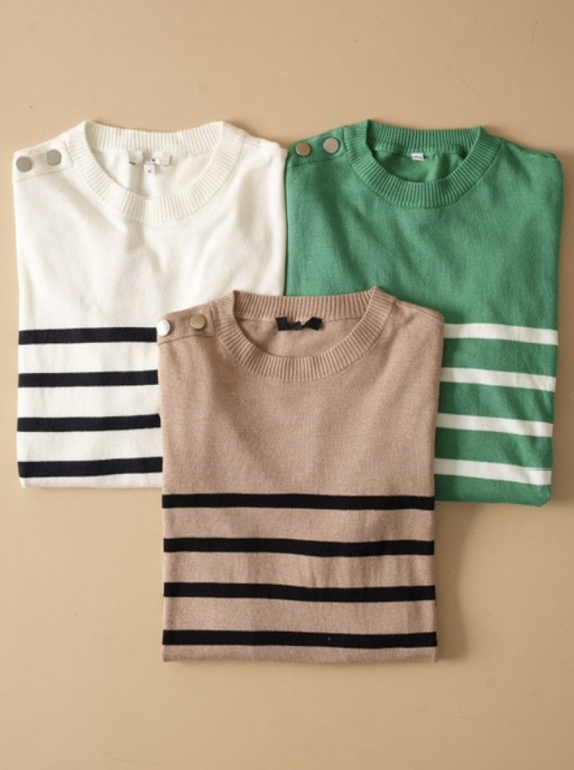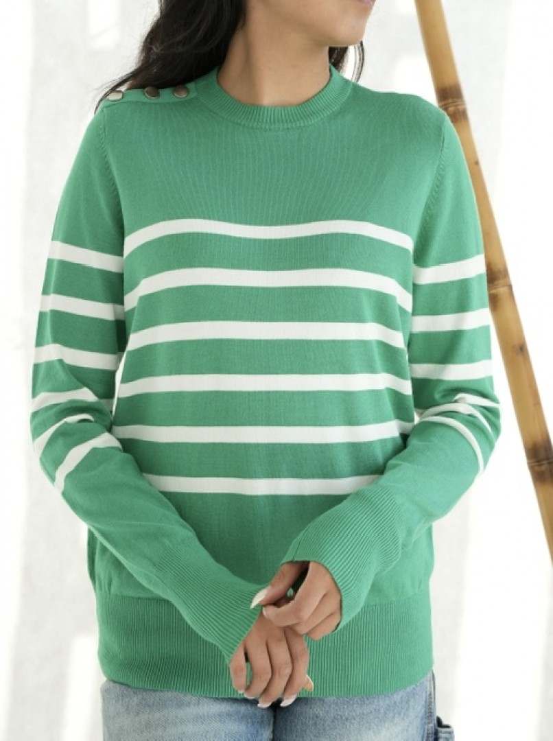 بلوز بافت سرشونه دکمهدار، انتخابی شیک و متفاوت برای روزهای خنک سال است. طراحی خاص دکمهدار در ناحیه شانهها، علاوه بر زیبایی، جلوهای مدرن و خاص به استایل شما میبخشد. این مدل بلوز بافتنی، ترکیبی از راحتی و استایل جذاب است و بهراحتی با شلوار جین، لگ یا دامن ست میشود