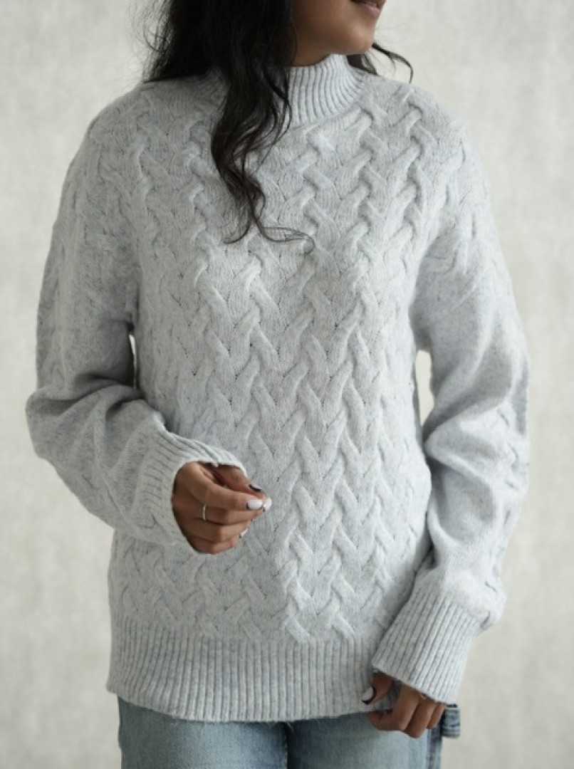 بافت آبی روشن با طرح بافت درشت و بافتی نرم و لطیف؛ انتخابی شیک و گرم برای روزهای سرد. ترکیب سادگی و استایل در رنگی آرامبخش و خاص.