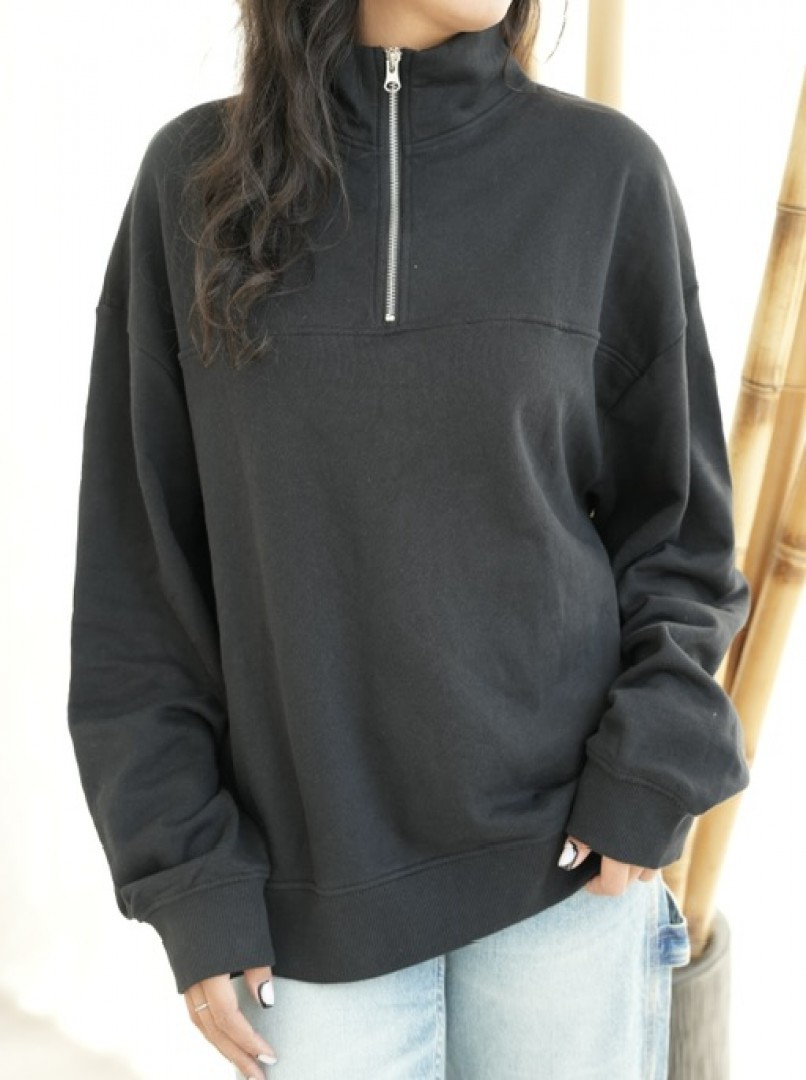 سویشرت دورس توکرک نیمزیپ با بافت نرم و گرم، طراحی ساده و مدرن برای استایلهای روزمرهی شیک.