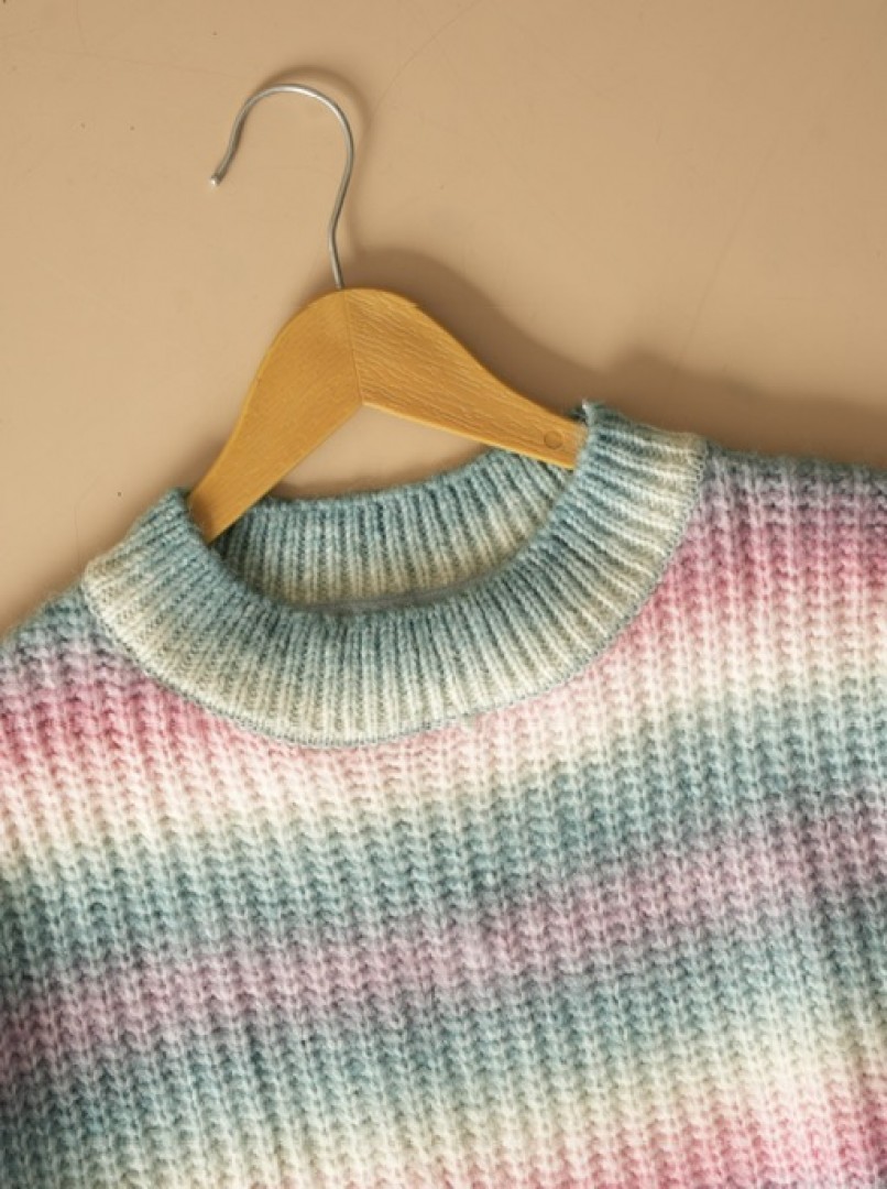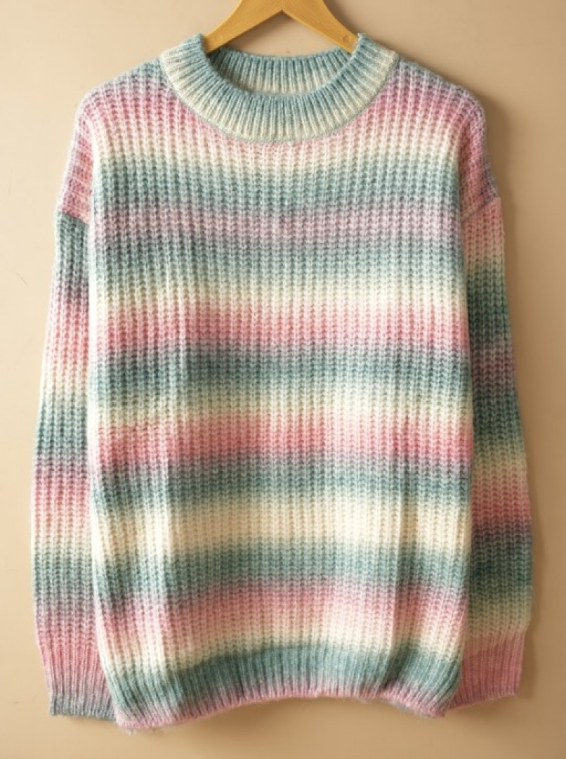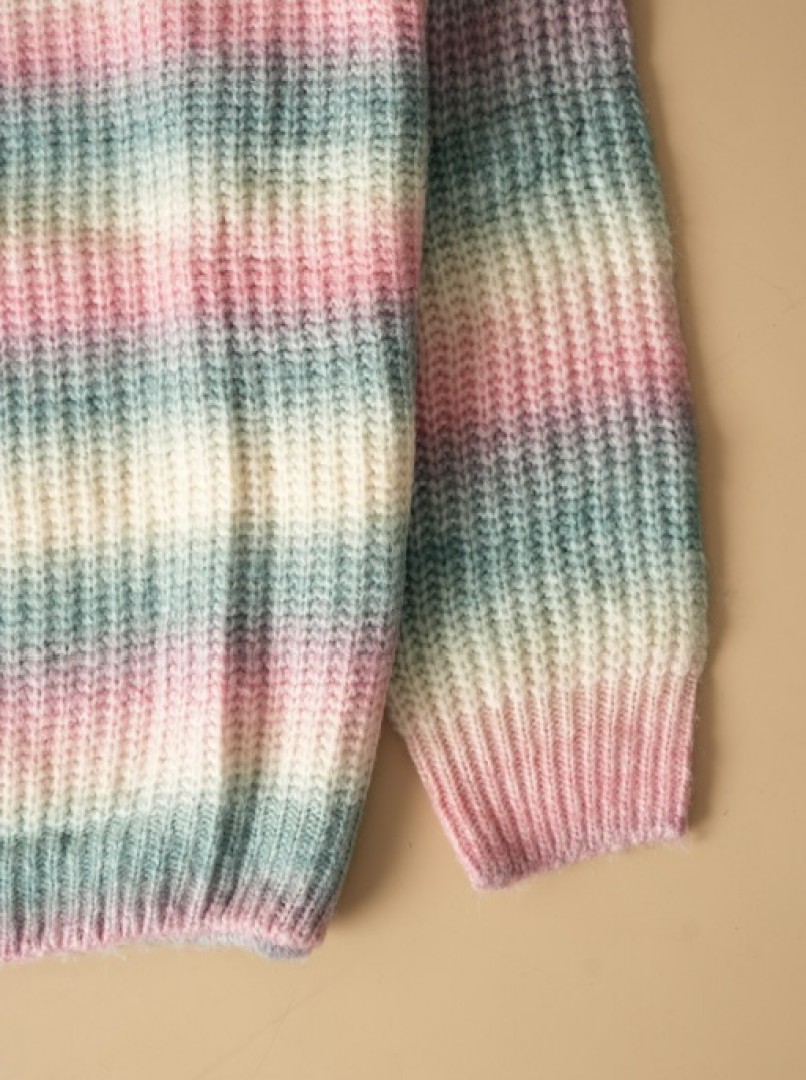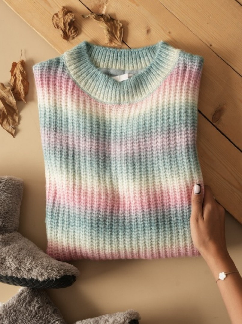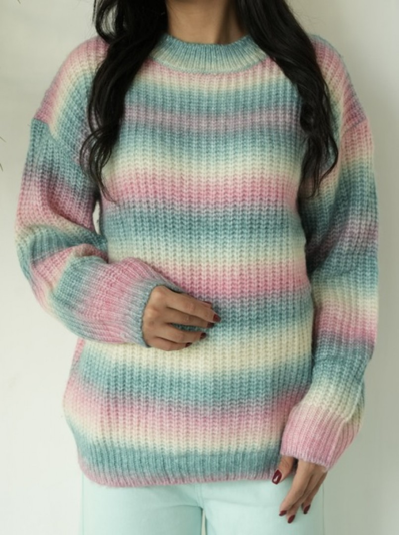 پلیور آبرنگی زنانه با بافت نرم و رنگ‌های پاستلی ملایم؛ گرم، سبک و مناسب استایل روزمره. انتخابی ایده‌آل برای پاییز و زمستان با ترکیب رنگی جذاب و چشم‌گیر