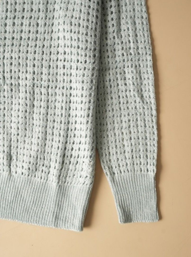 بافت پاستلی زنانه با طراحی سوراخدار و الیاف نرم، انتخابی خاص برای استایل پاییزی و کافهگردیهای دلنشین.