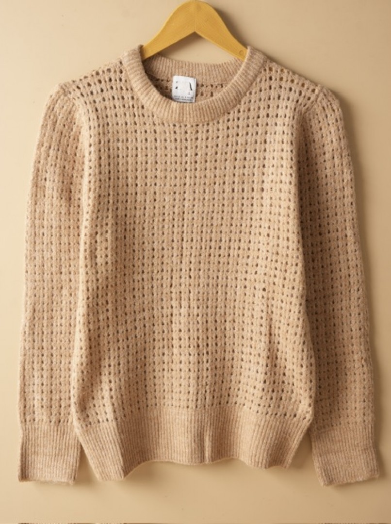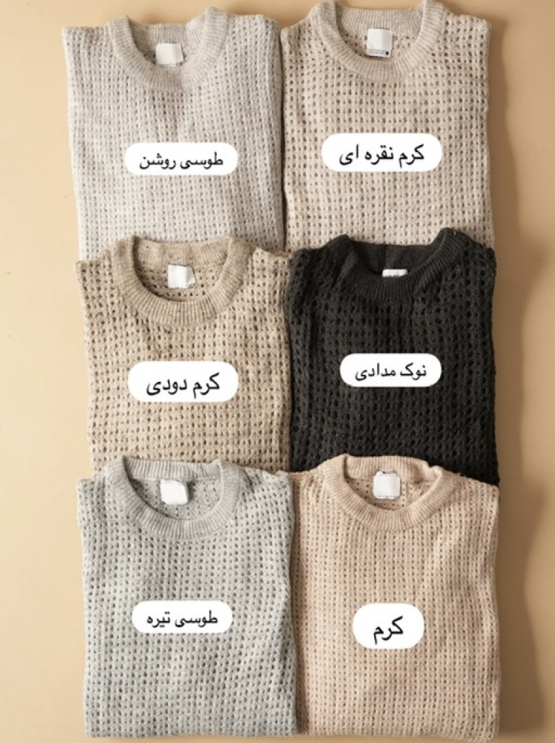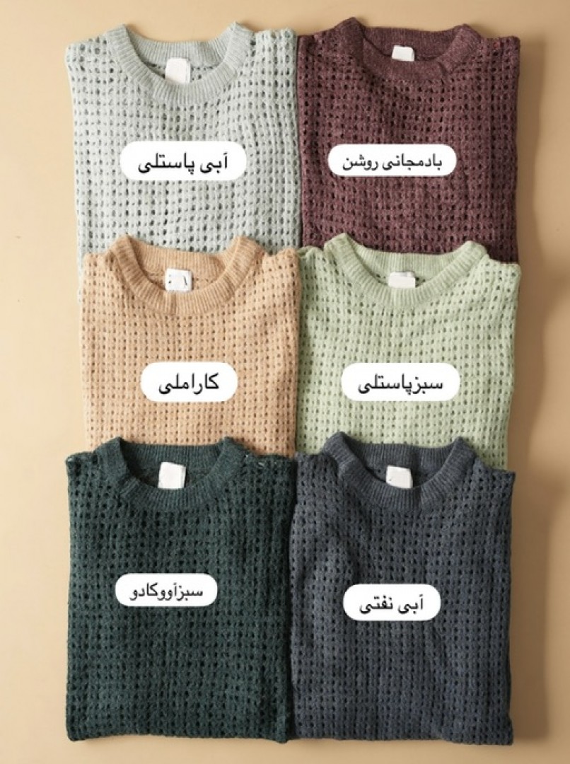 بلوز بافت سوراخدار زنانه با رنگهای پاستلی، سبک، نرم و مناسب فصل پاییز و بهار. ترکیبی از راحتی و استایل شیک.