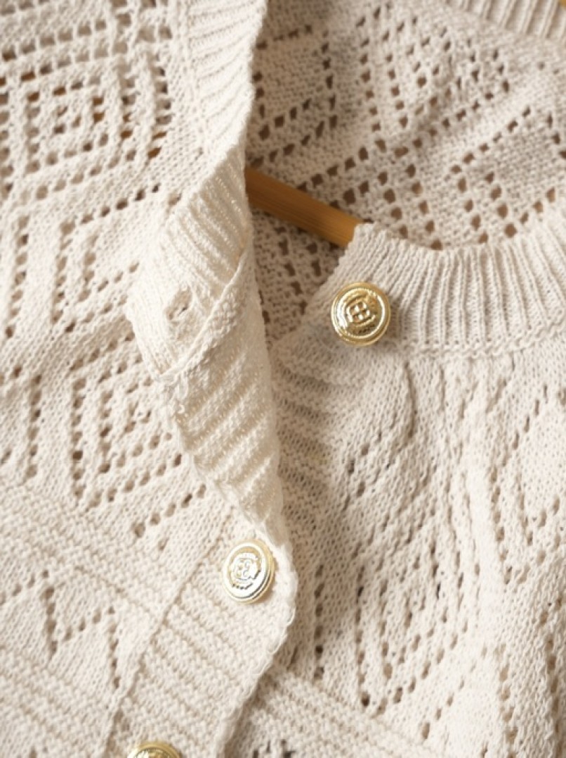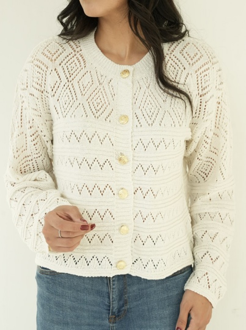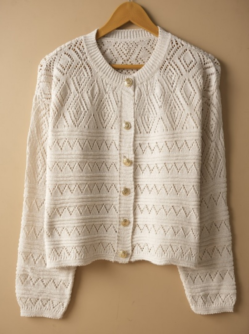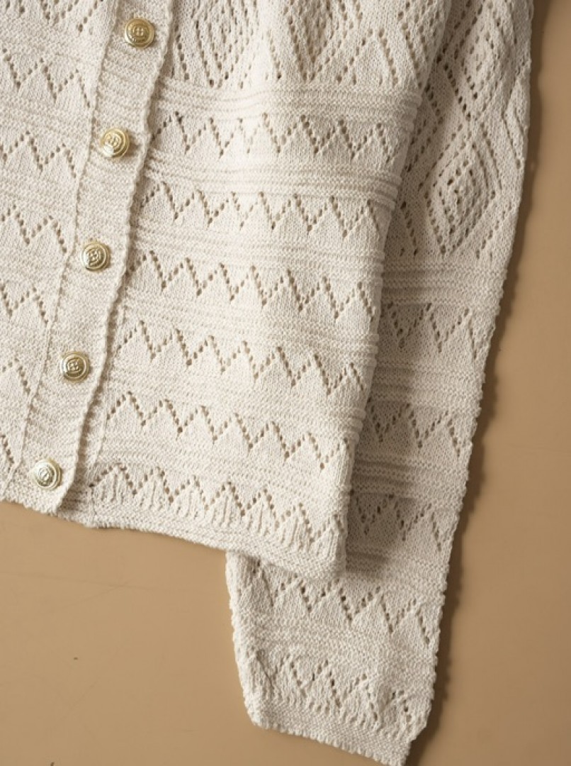 ژاکت بافت طرحدار زنانه کرم با دکمههای طلایی کد1552
