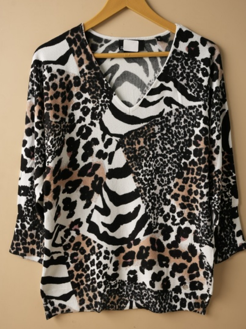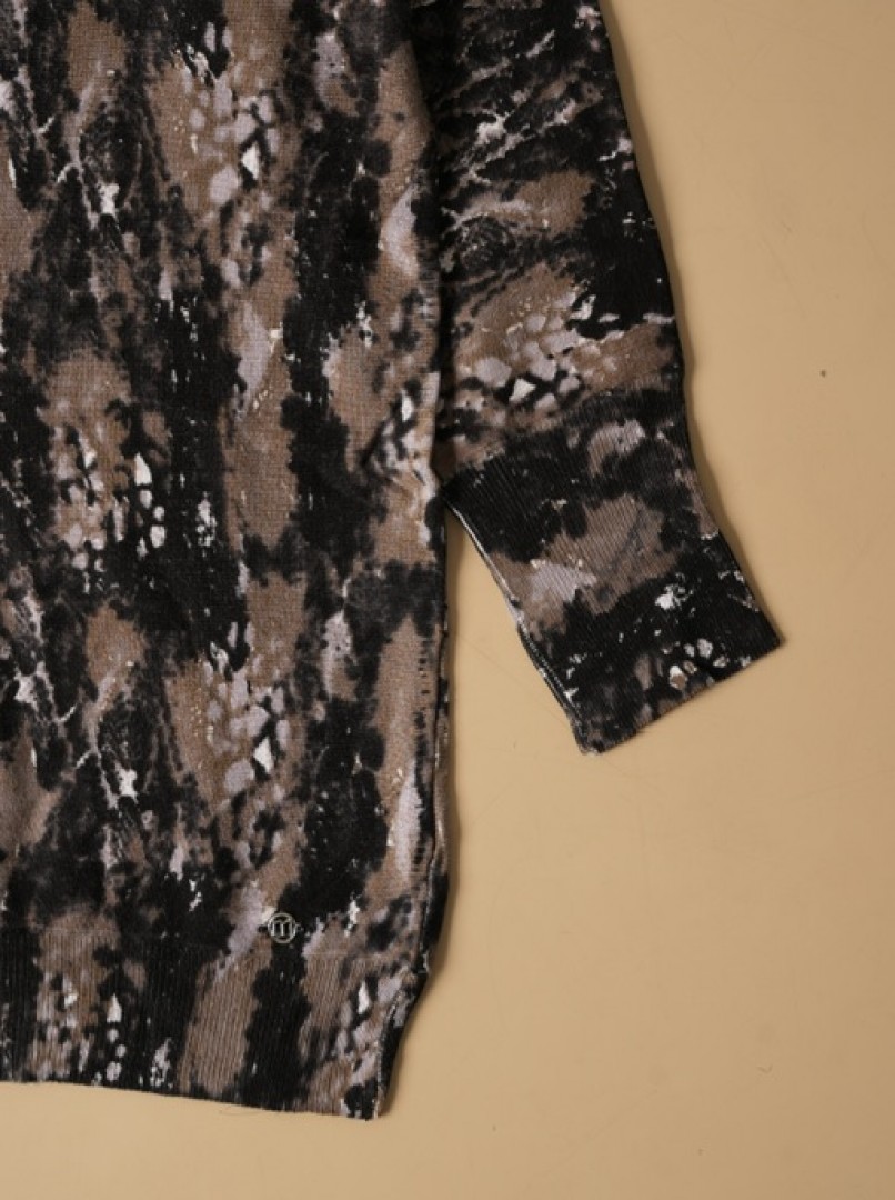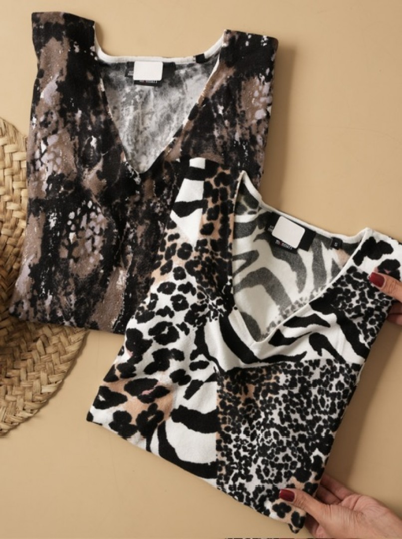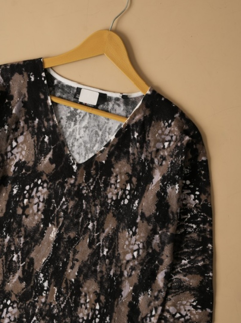 بلوز بافت سبک زنانه یقه‌ V با طرح ترند ، انتخابی شیک برای استایل روزمره و مهمانی. جنس نرم و سبک، مناسب فصل‌های خنک . ترکیب رنگ‌های قهوه‌ای، مشکی و بژ این بلوز را به گزینه‌ای جذاب برای ست با جین، بوت و اکسسوری‌های مینیمال تبدیل کرده است