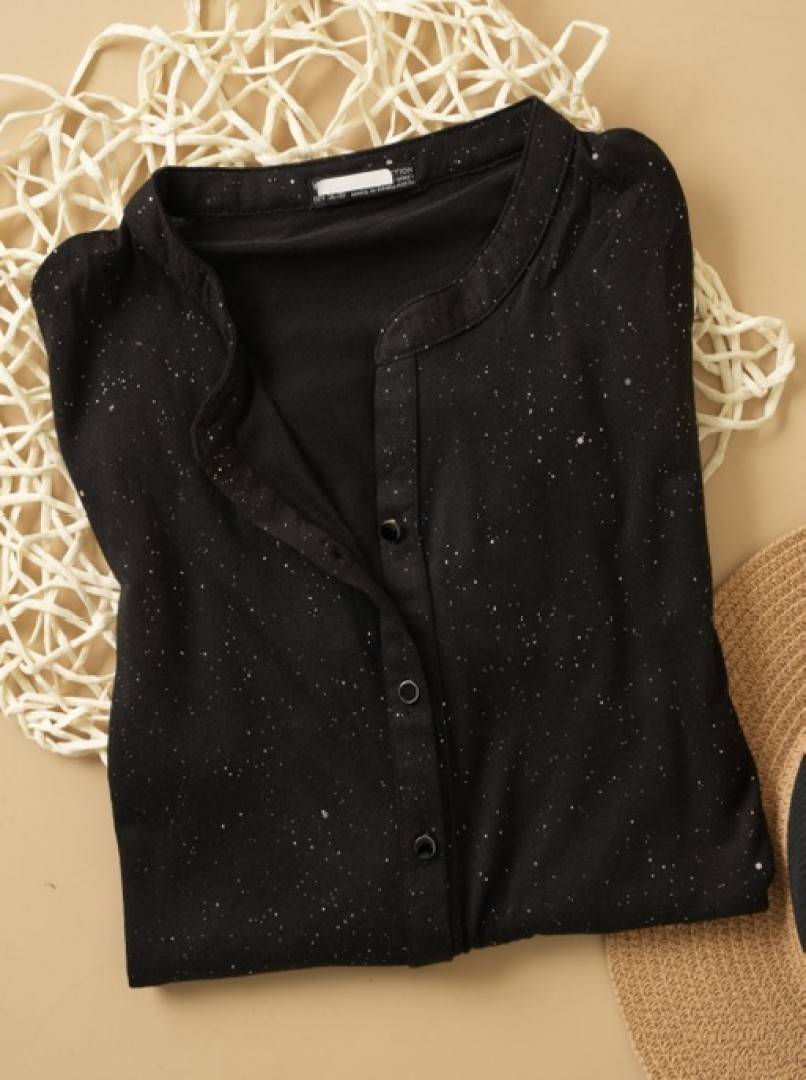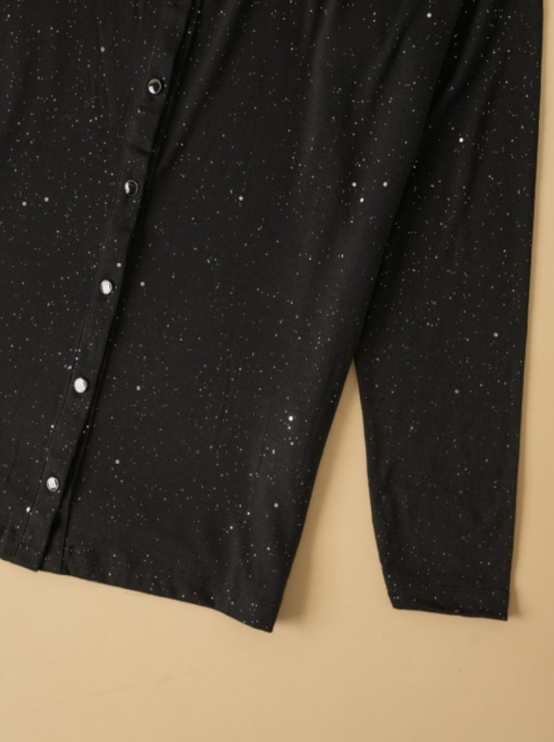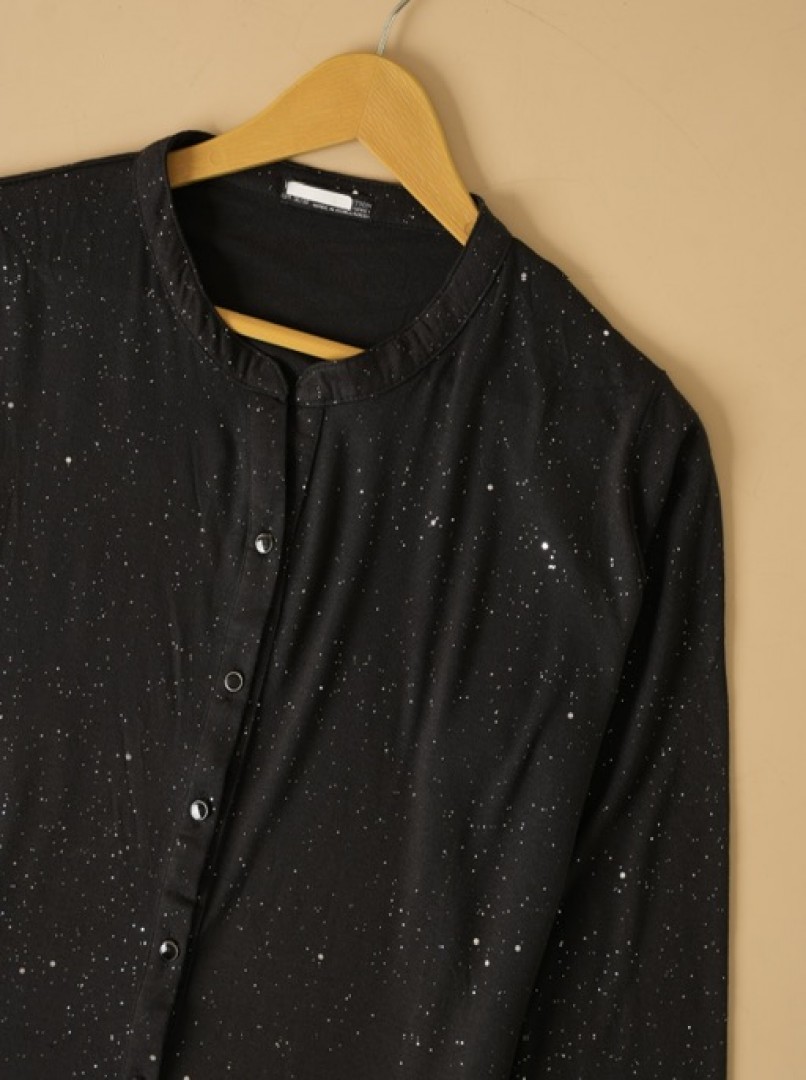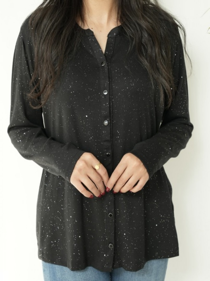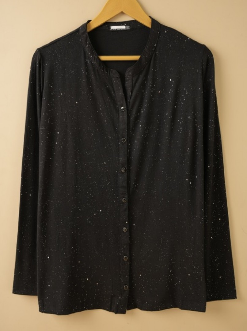 بلوز مشکی شاین ترک، انتخابی شیک و مجلسی برای مهمانی‌ها و استایل شب. این بلوز با پارچه باکیفیت ترک، درخشش ظریف و تنخور جذاب، استایلی لوکس و متفاوت ایجاد می‌کند و به‌راحتی با دامن یا شلوار مجلسی ست می‌شود.
