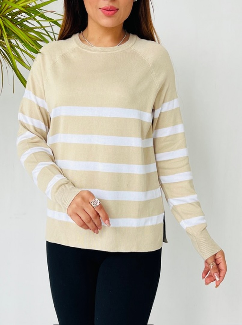 اگر به دنبال یک بلوز بافت راهراه شیک، گرم و بادوام هستید که هم در خانه و هم در بیرون قابل استفاده باشد، این مدل میتواند انتخابی عالی برای تکمیل کمد لباس شما باشد.