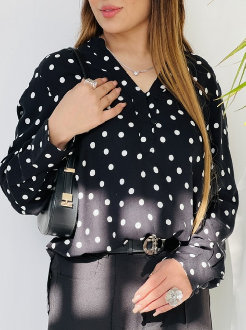شومیز مشکی با طرح توپتوپی، انتخابی شیک و پرطرفدار برای استایلهای مهمانی و بیرونی است. این شومیز با طراحی جذاب و رنگ مشکی کلاسیک، بهراحتی با انواع شلوار و دامن ست میشود و ظاهری خاص و چشمنواز به شما میدهد. پارچه خوشفرم و تنخور عالی آن، گزینهای ایدهآل برای استفاده روزمره، دورهمیها و مهمانیهای دوستانه محسوب میشود -
