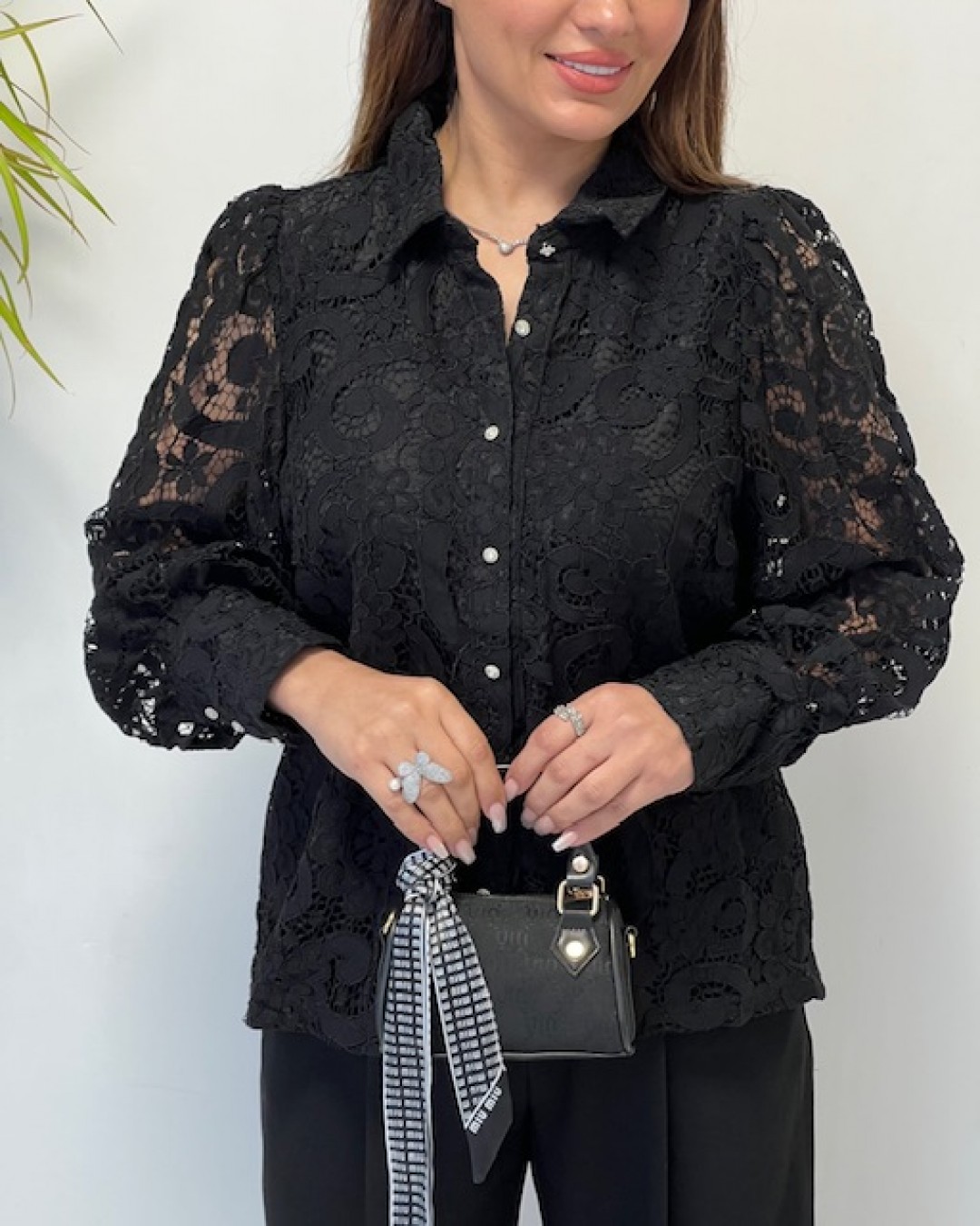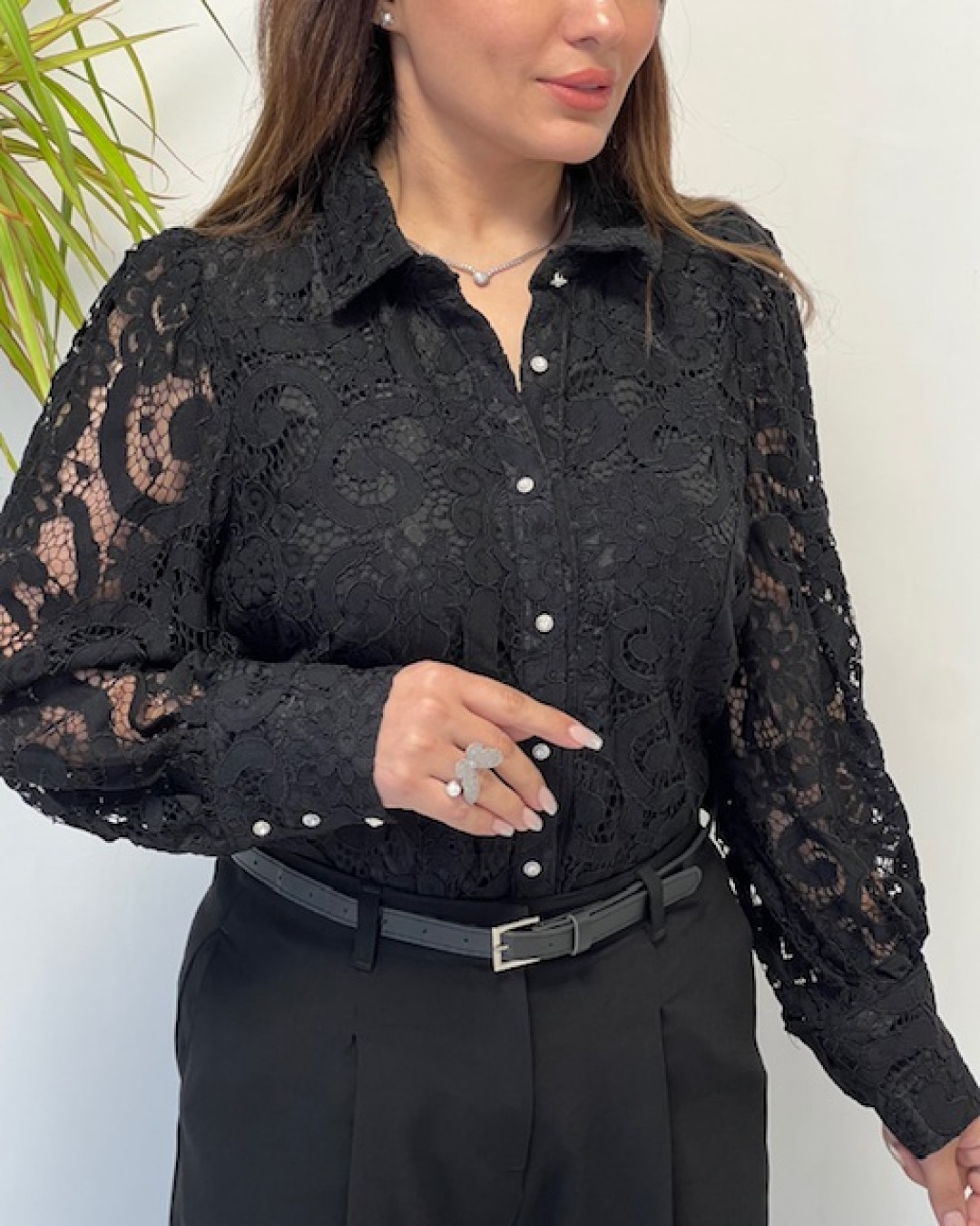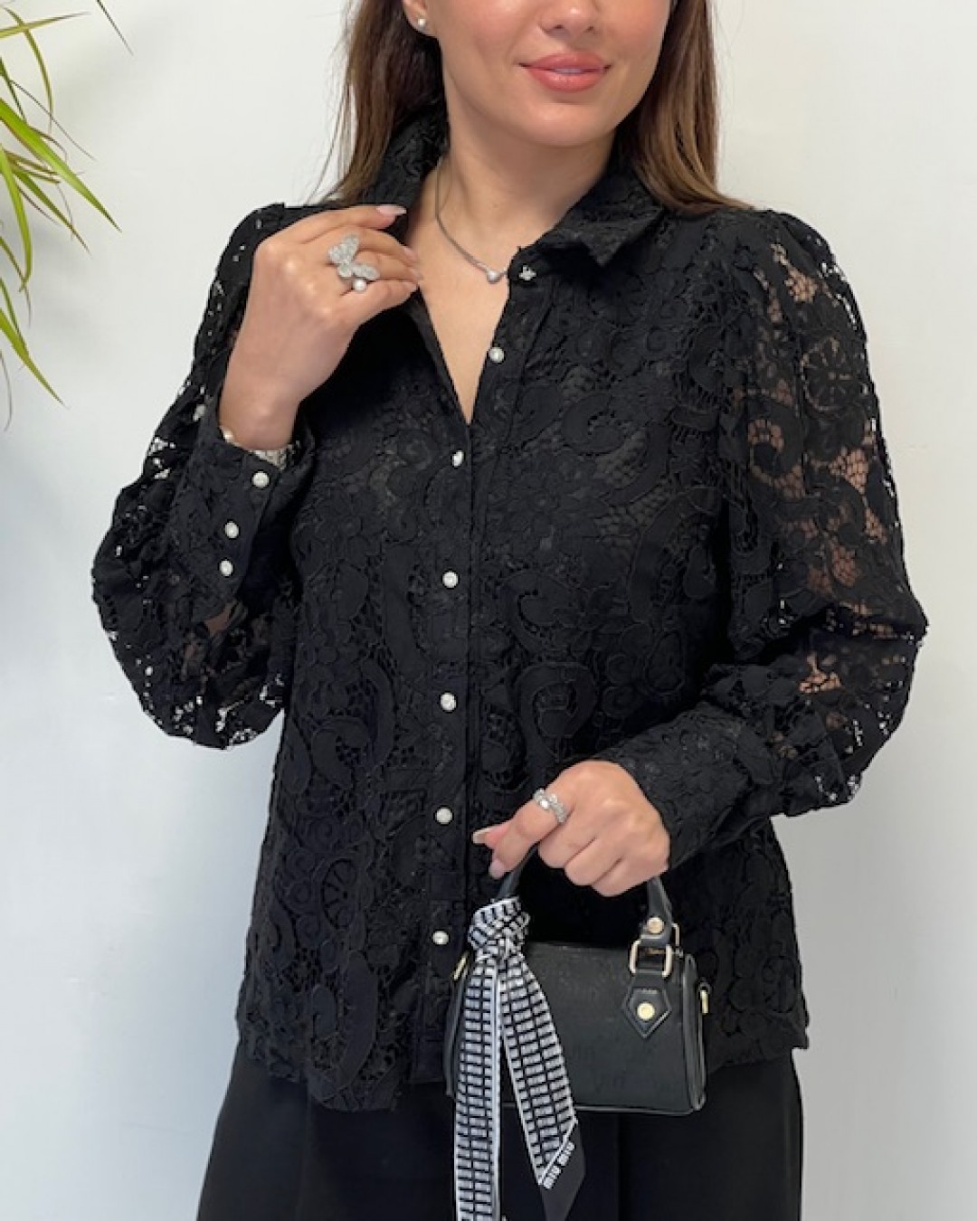 شومیز دانتل آستر‌دار در دو رنگ سفید و مشکی؛ ظریف، شیک و کاملاً غیر بدن‌نما. تنخور زیبا و مناسب مهمانی و استایل‌های خاص ?
