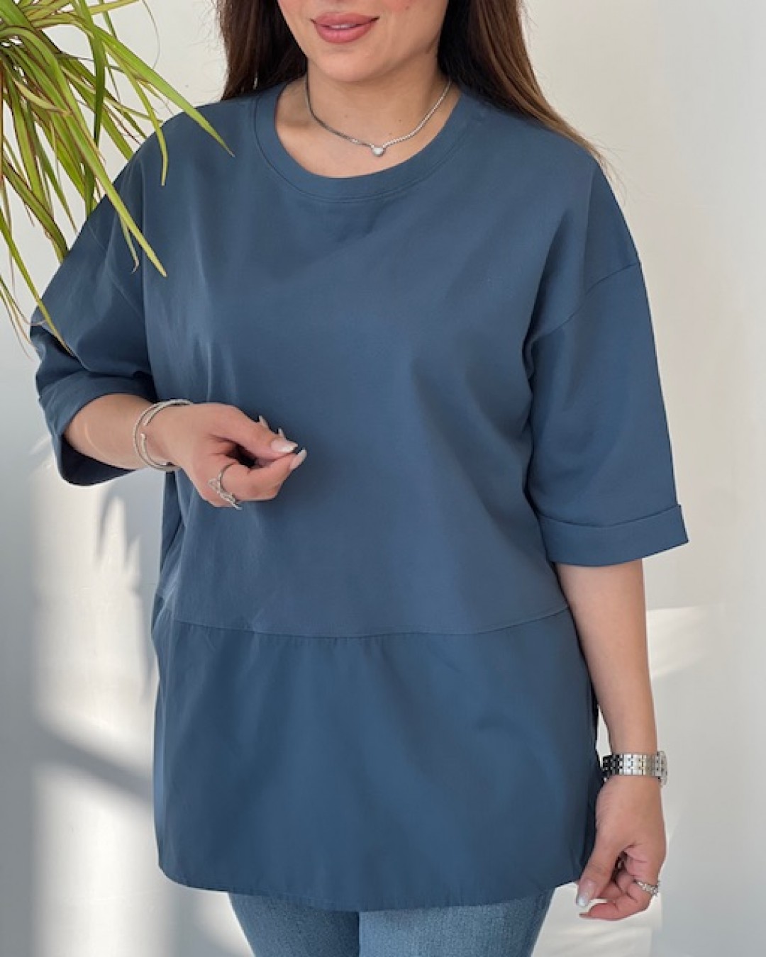 • طراحی دو تکه و ترکیبی • پارچه سبک و خنک • تنخور آزاد و راحت • مناسب استفاده روزمره، دورهمی و استایل کژوال • قابل ست با انواع شلوار جین و پارچهای
